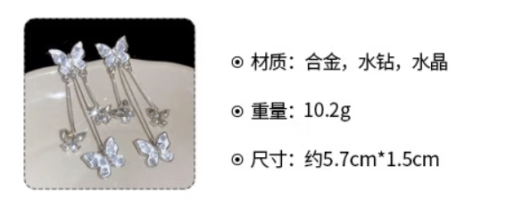 Silver Stud Rhinestone-encrusted Butterfly Tassel Earrings